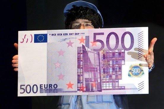 / euroscheine als scheck,.den man natürlich nicht wirklich e.